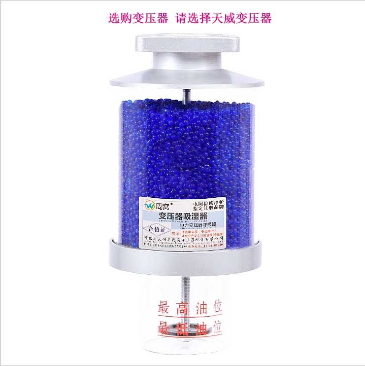 呼吸器一般安裝在離地面1、5至2米的高度,以便于檢查和維護。因為變壓器油體積隨溫度而變化,油枕要通過呼吸器發生排氣和吸氣作用,所以。內部干燥劑吸收空氣中的水分和雜質,以保持油的質量。